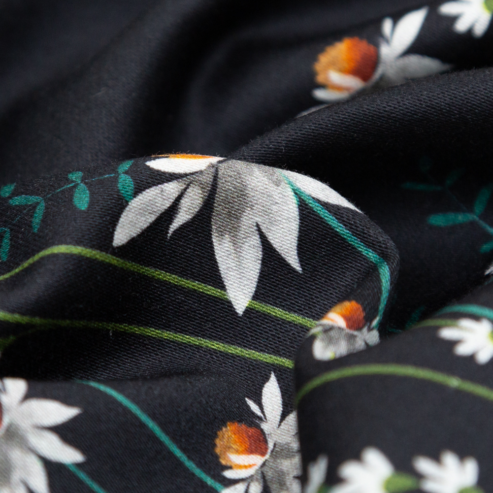Stretch Cotton Sateen Panel - Black Beauty Daisy Flowers - Growing Distant Print - Mood Exclusive Kenko Collection