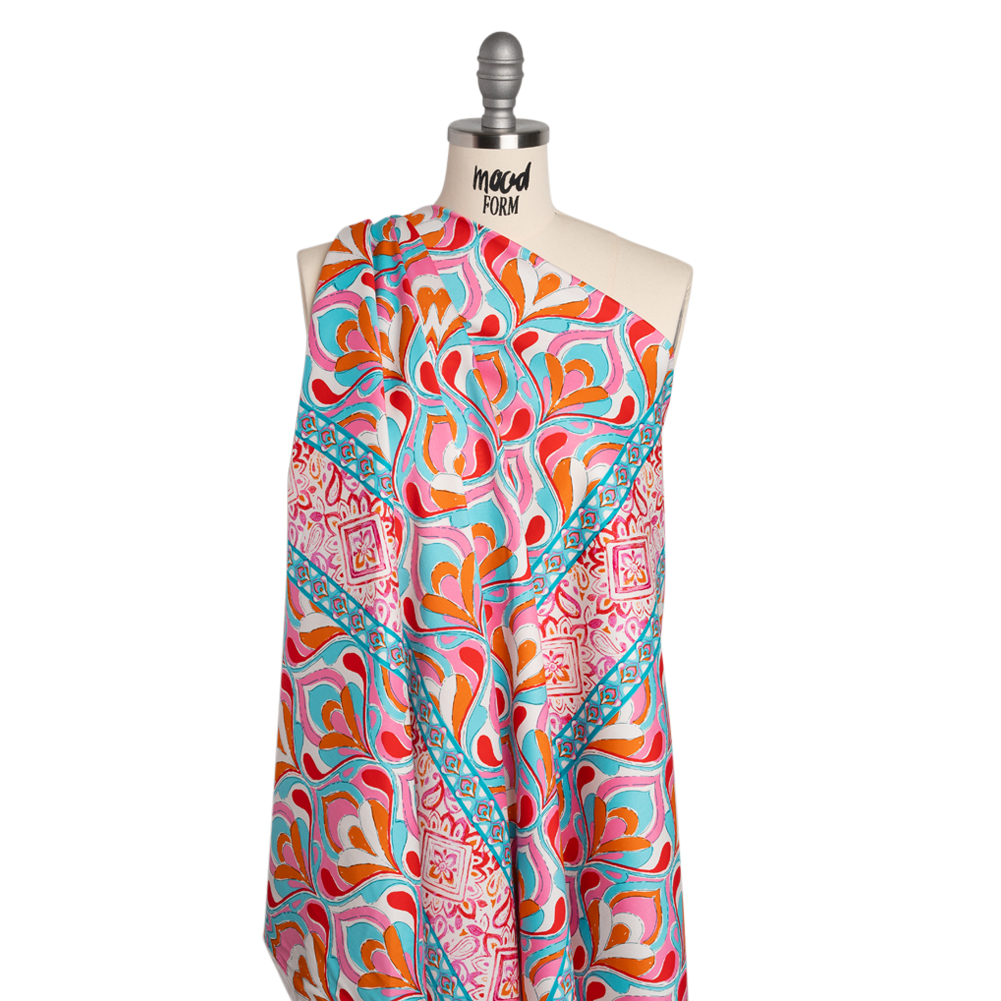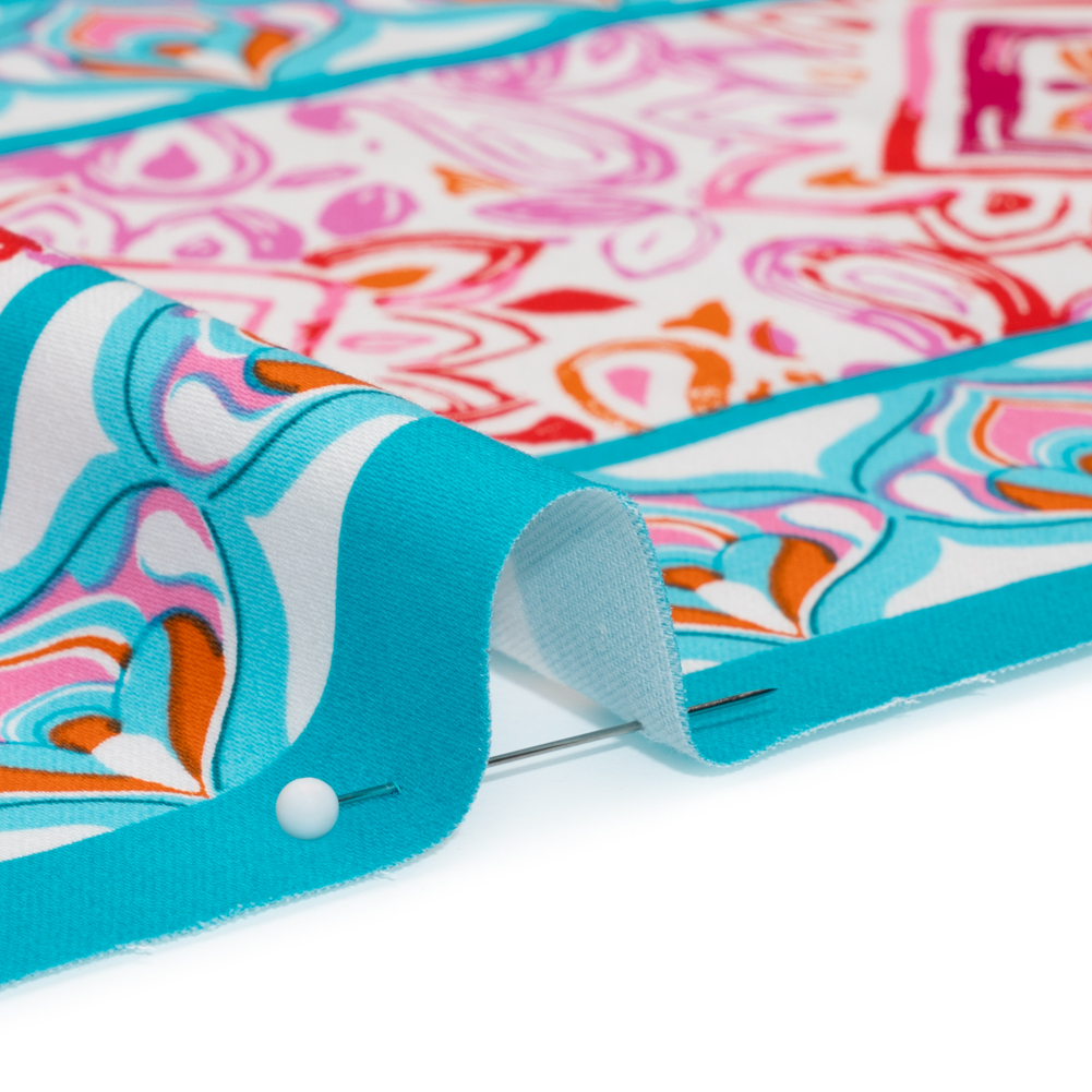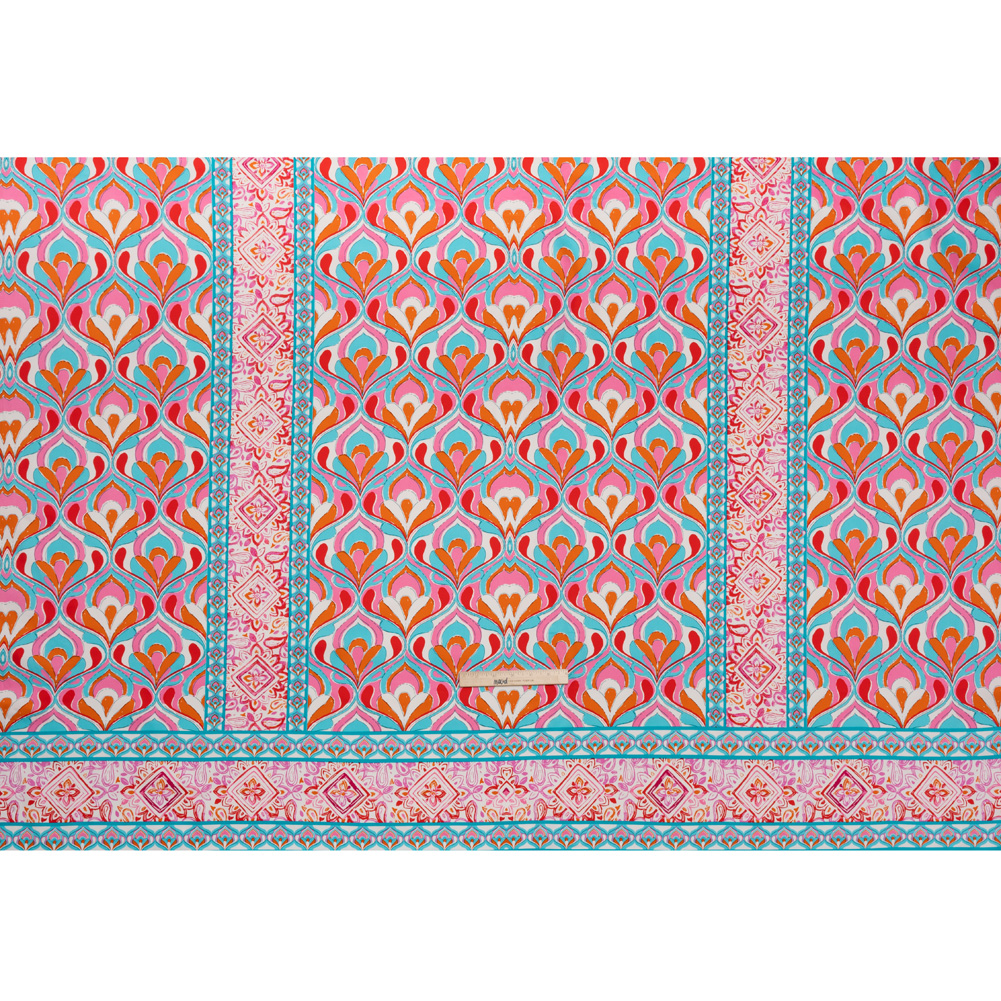 Be the first to review “Stretch Cotton Sateen Panel – Turquoise, Pink and Orange Floral Ogees and Stripes – Designer Deadstock”