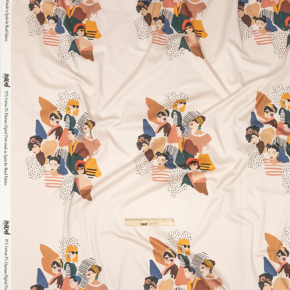 Stretch Cotton Sateen - Pink and Multi Fashionable Figures - Sulla Piazza Print - Mood Exclusive Viso Collection