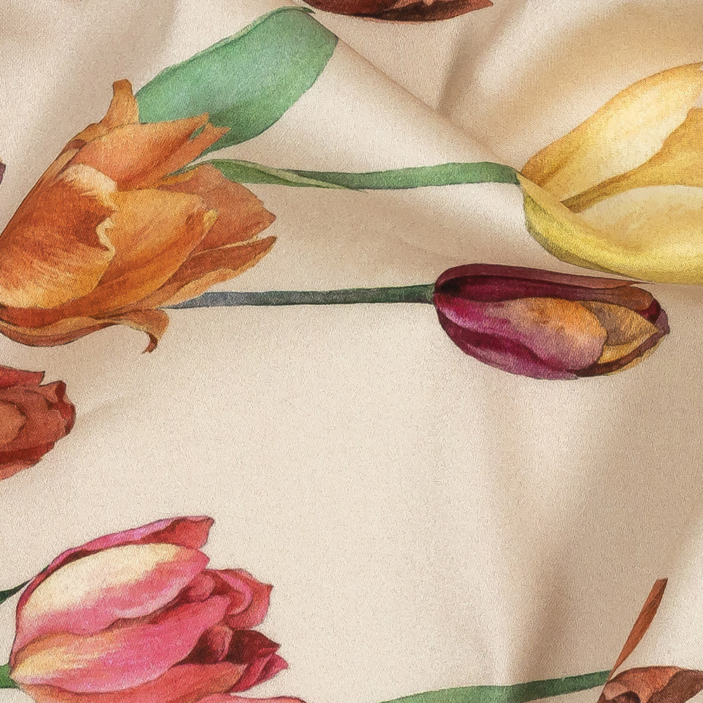 Stretch Cotton Sateen - Pink, Red and Yellow Tulips Border - Camminata Print - Mood Exclusive Viso Collection