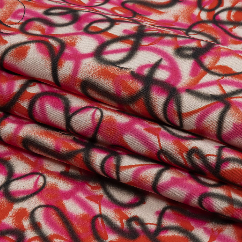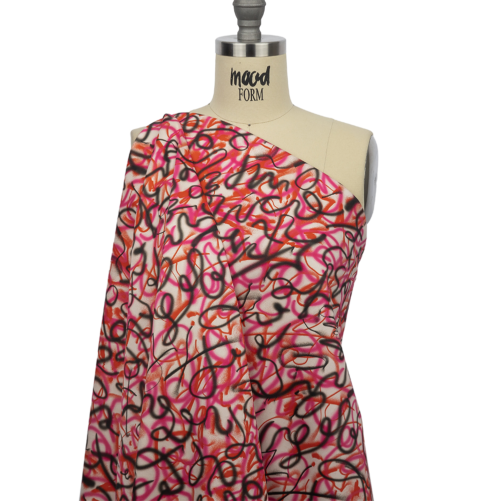 Stretch Cotton Sateen - Pink Spraypaint Scribbles - Love Notorious Print - Mood Exclusive Metro Collection