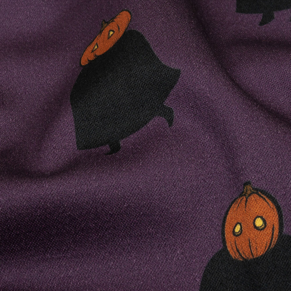 Stretch Cotton Sateen - Purple Pumpkin People - Pumpkin Patch Print - Mood Exclusive Jack-O-Lantern Collection