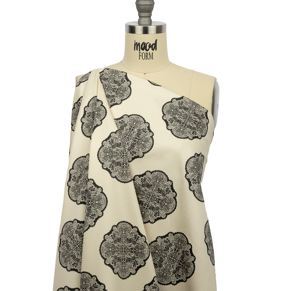 Be the first to review “Stretch Cotton Sateen – White Lacy Medallions – Cathedral Windows Print – Mood Exclusive Metro Collection”