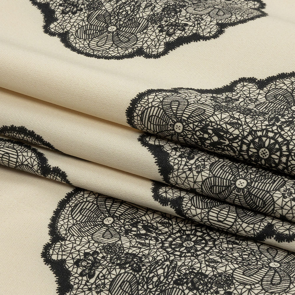 Stretch Cotton Sateen - White Lacy Medallions - Cathedral Windows Print - Mood Exclusive Metro Collection