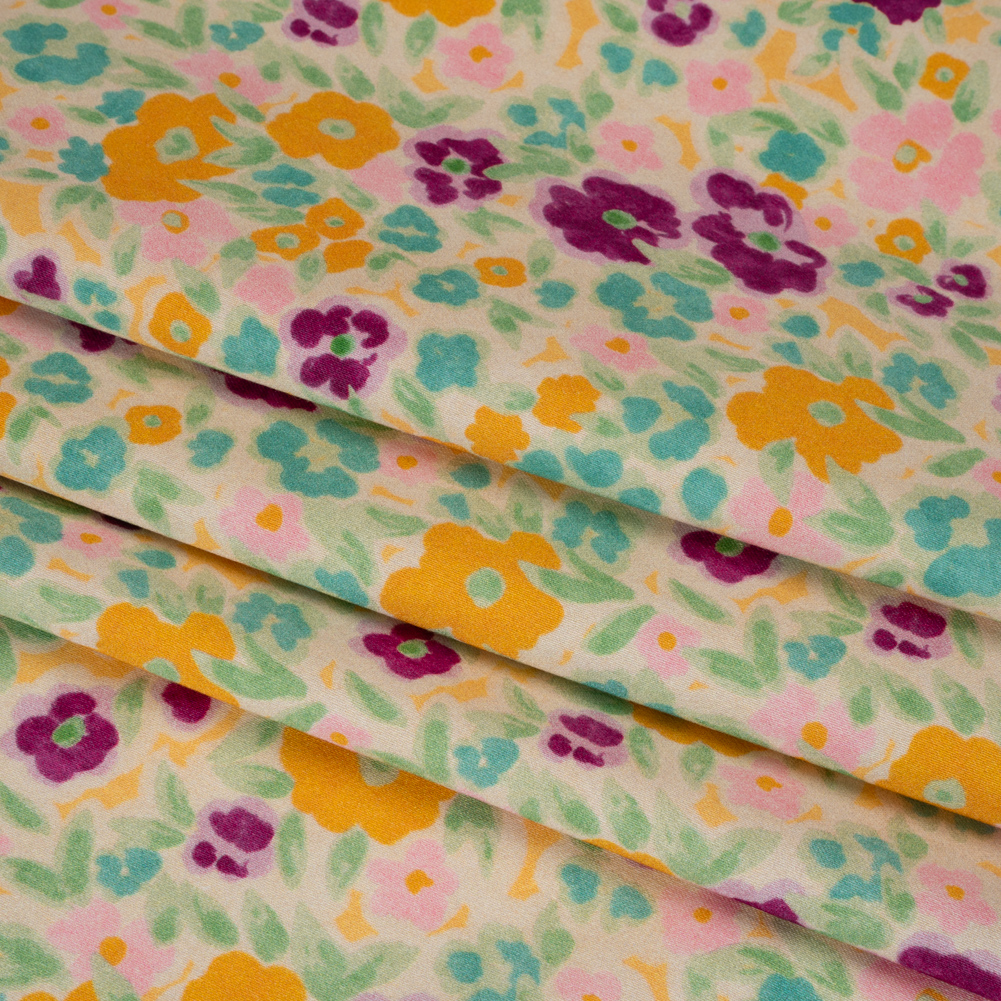 Stretch Cotton Sateen - Yellow and Plum Floral - Midsummer Meadow Print - Mood Exclusive Chariot Collection