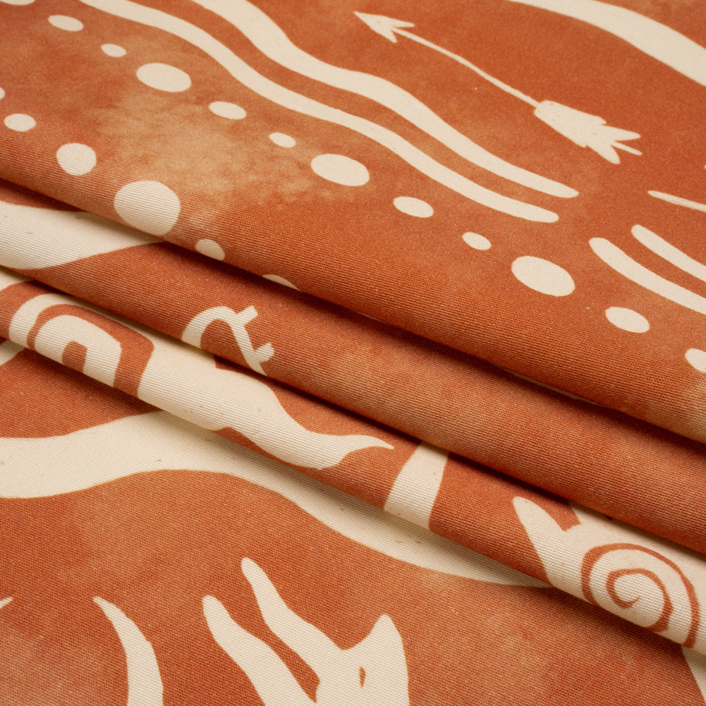 Stretch Cotton Twill Panel - Orange Desert Symbols - Mood Exclusive Follow Your Arrow