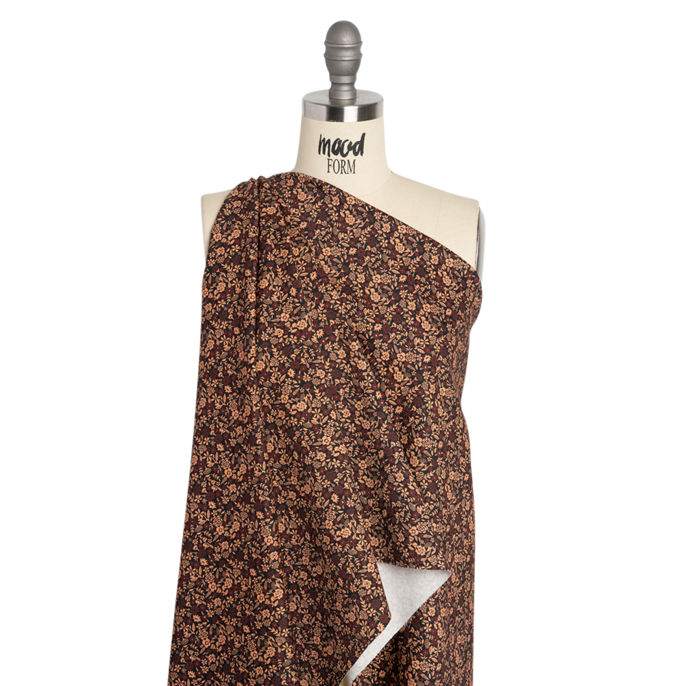 Stretch Cotton Twill Print - Black, Pink and Maroon Floral - Mood Exclusive Always in Bloom
