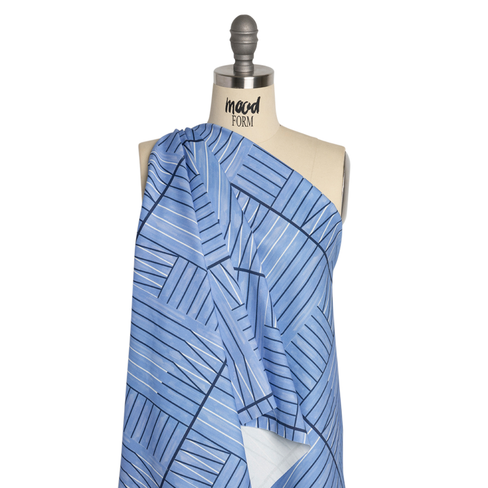 Stretch Cotton Twill Print - Blue Lines in Blocks - Mood Exclusive Structurally Sound