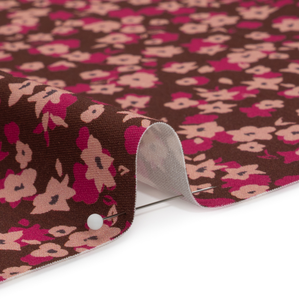 Stretch Cotton Twill Print - Brown and Pink Floral - Mood Exclusive Petals to Pick