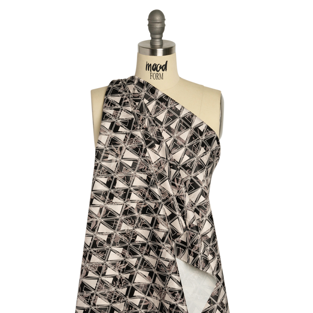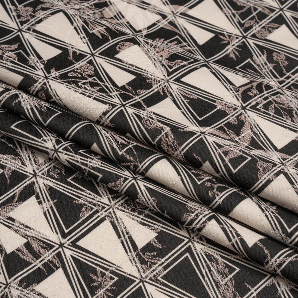 Stretch Flowers and Cranes Jacquard Print – Black and Cream Triangles – Mood Exclusive Take Flight