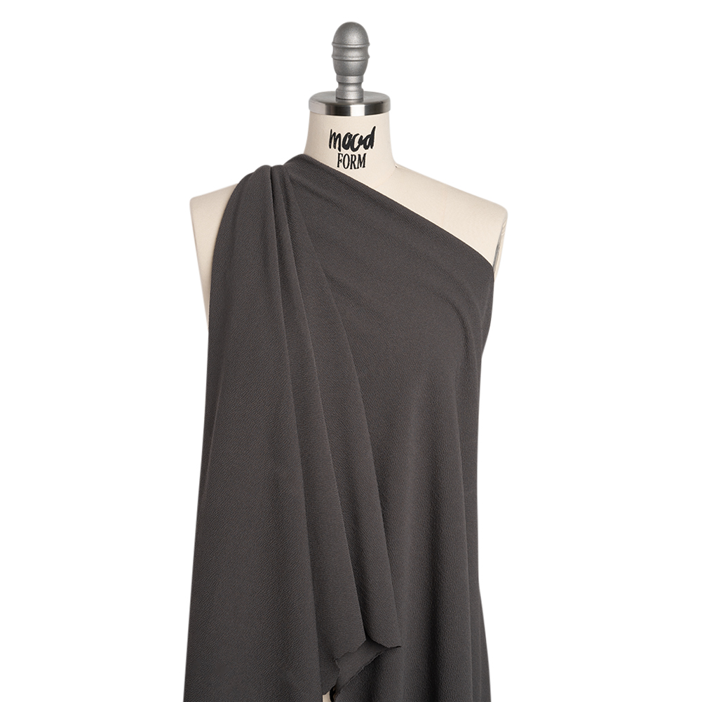 Stoke the fires of your imagination with this Charcoal Stretch Liverpool Knit—featuring a dry, tactile hand and malleable drape.Suggested Projects: Dresses, Skirts, Pants, BlazersContent: 95% Polyester, 5% SpandexStretch: 50% Weftwise, 40% WarpwiseOpacity: Slightly TranslucentStretch the lengths your wardrobe pieces will go with this charcoal stretch Liverpool knit. Part of the crepe family, Liverpool knits are composed of raised twisted yarns that yield a bumpy, somewhat dry hand. You won't be disappointed with the moderate all-way stretch. Neither heavy nor light as a feather, it has a medium weight with a fluid, malleable drape. Make any floor your runway when wearing this fabric in the form of pencil skirts, high-waisted shorts, or blazers with a relaxed fit, all sure to make a lasting impression! Slightly translucent, a lining can be used to increase opacity and structure.