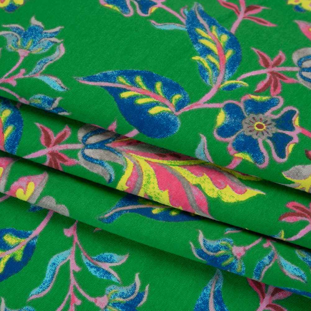 Stretch Organic Cotton Jersey - Kelly Green, Ultramarine Blue, and Hot Pink Jacobean Floral - Deadstock