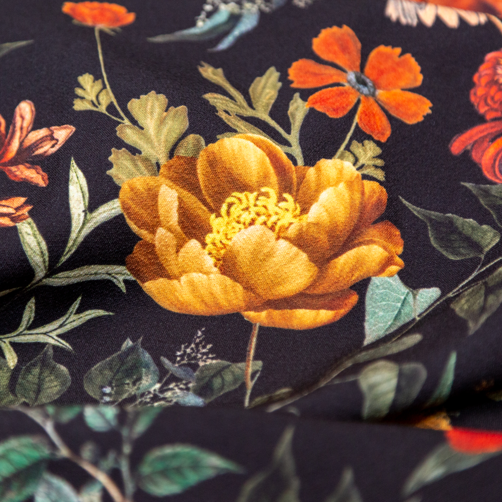 Stretch Polyester Crepe - Black Floral - Garden of Earthly Delights Print - Mood Exclusive Harvest Collection