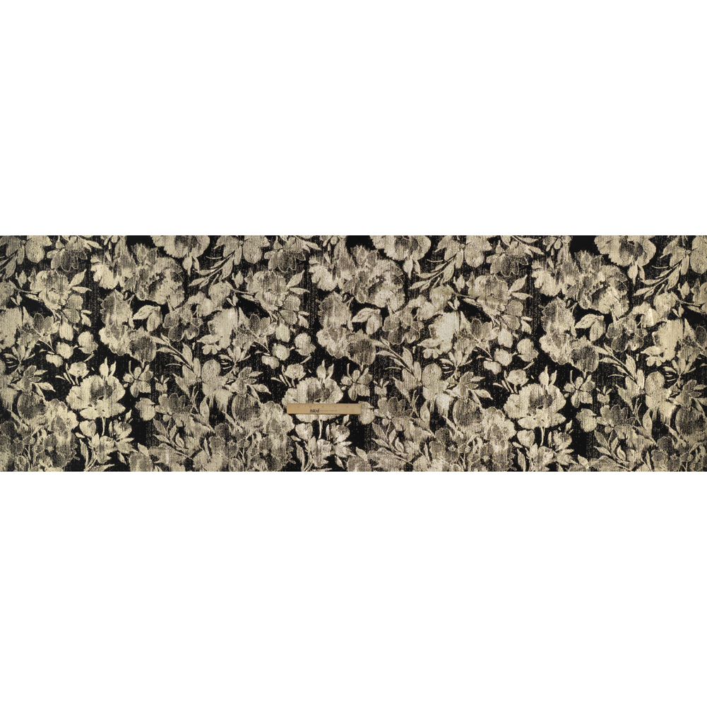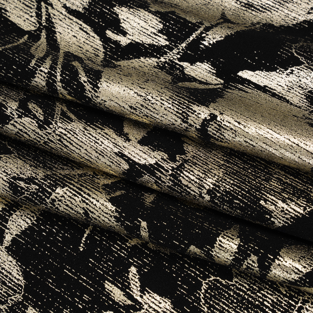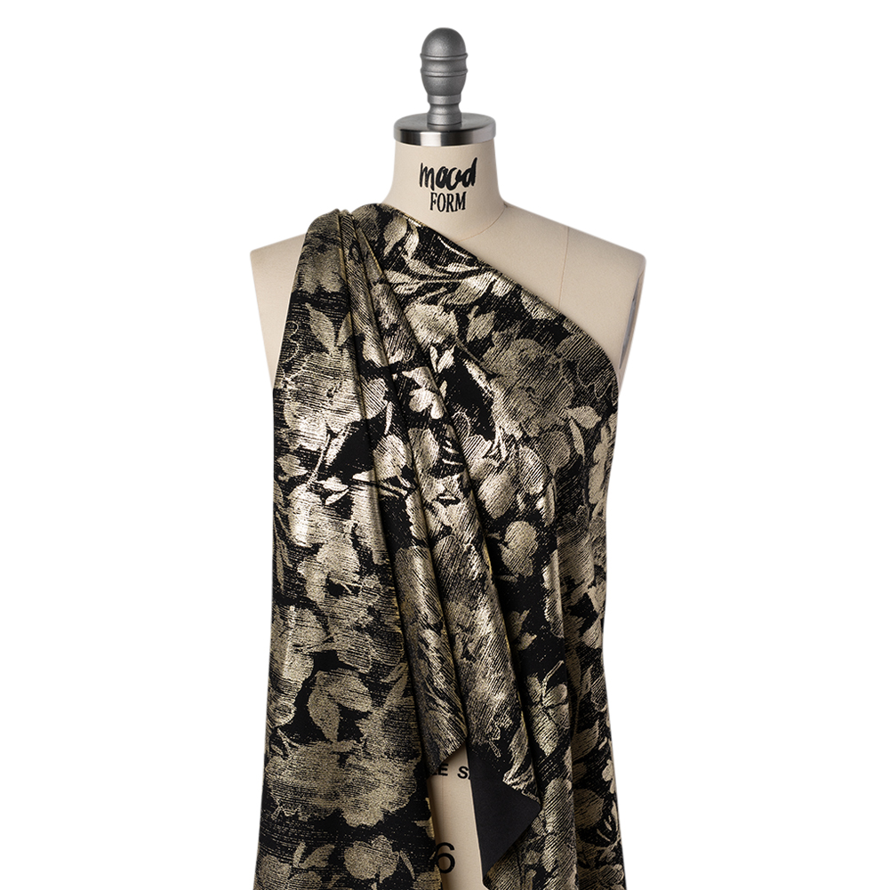 Stretch Polyester Crepe Knit with Foiling - Black and Gold Textured Florals - Designer Deadstock