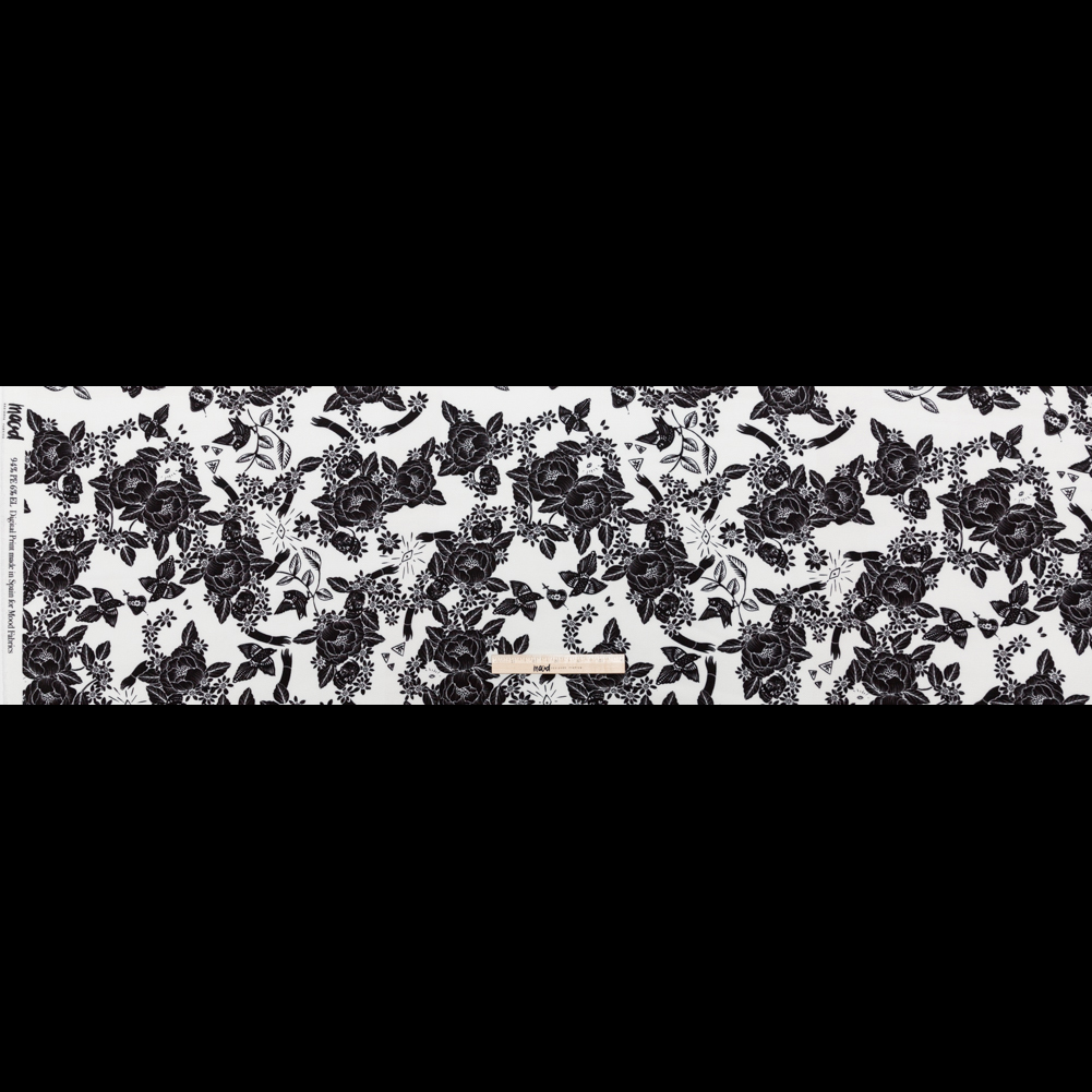 Stretch Polyester Crepe – White and Black Roses – Prophetic Dreams Print – Mood Exclusive Crow Collection