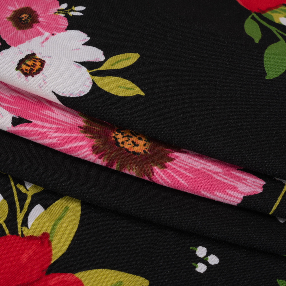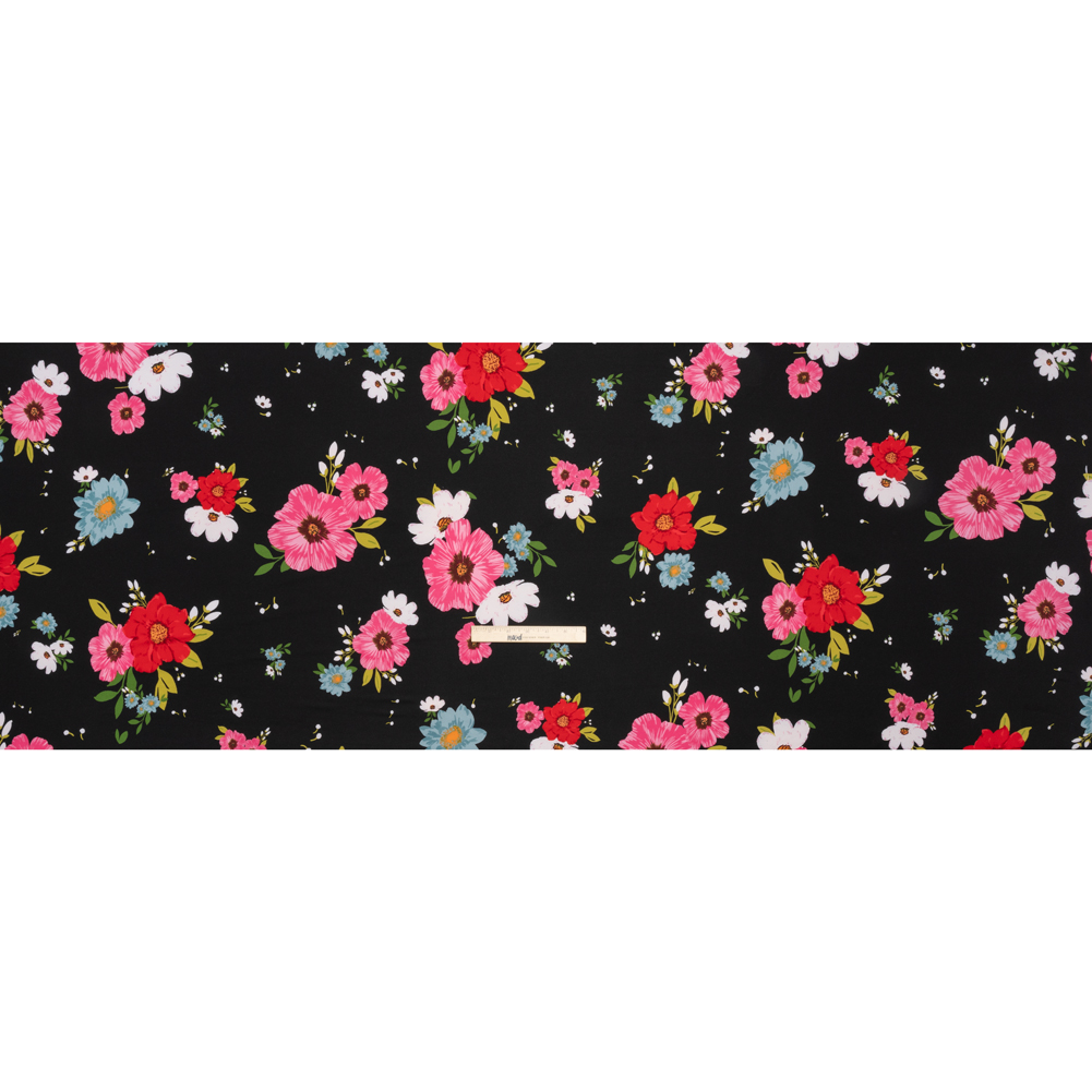 Stretch Polyester Jersey - Black, Red, and Pink Floral