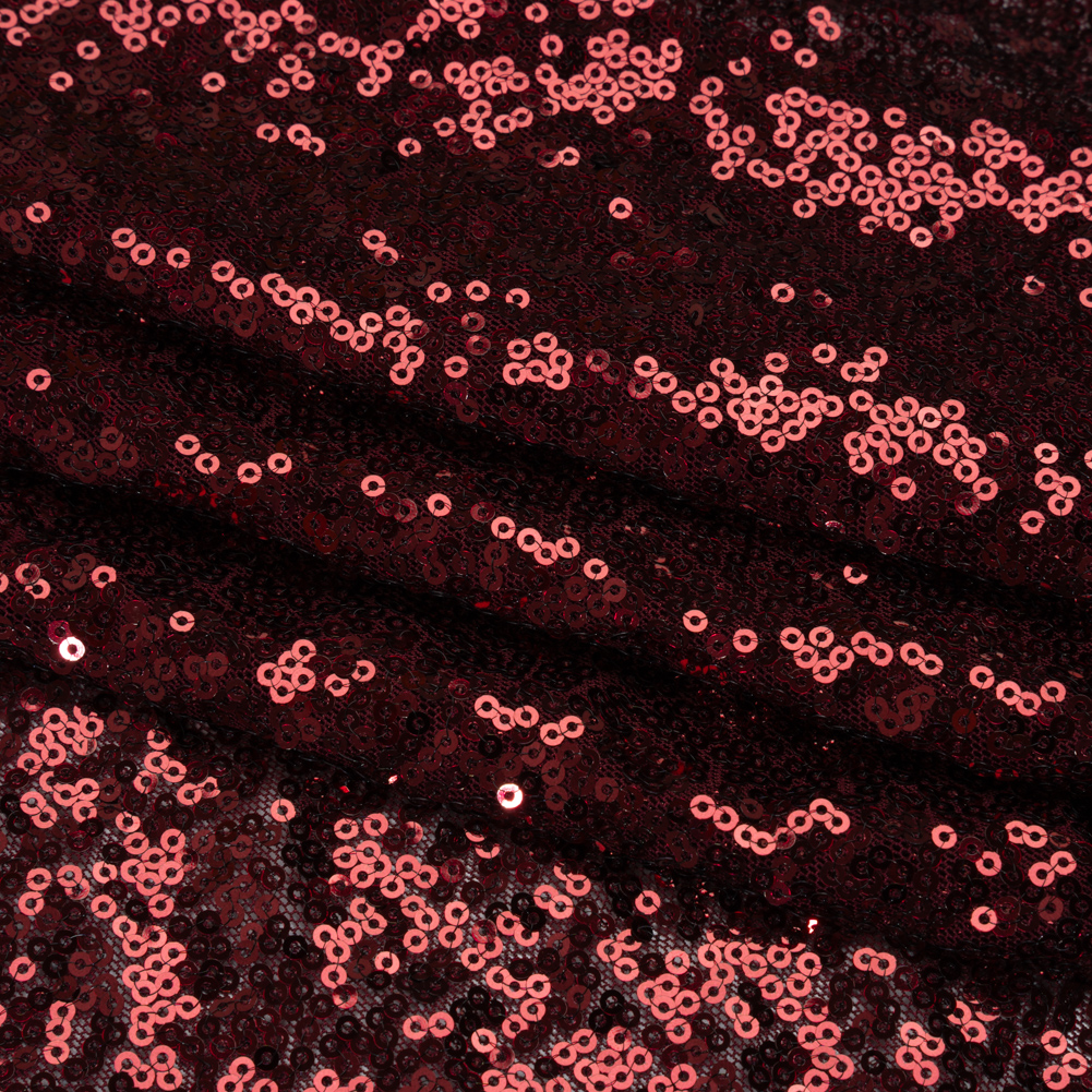 Luxuriate in the shifting wine hues of this Burgundy Stretch Polyester Mesh with Allover Baby Sequins—featuring a tactile hand and fluid drape.Suggested Projects: Dresses, Skirts, Jackets, PantsContent: 95% Polyester, 5% SpandexStretch: 30% Weftwise, 50% WarpwiseOpacity: SheerKeep the wine flowing all night long with this burgundy all-over baby-sequin-covered mesh. With a fluid drape and moderate all-way stretch, it’s the perfect fabric for fitted garments like bodycon dresses and mini skirts, or tailored jackets and fit and flare pants—for the performer at heart. Sheer, a lining is recommended for opacity and comfort.