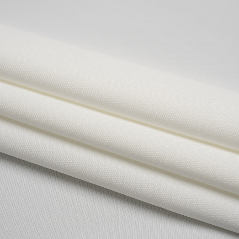 Dive into swimwear with this Ivory Stretch Polyester Scuba Knit, featuring a smooth, sleek hand and flexible drape.