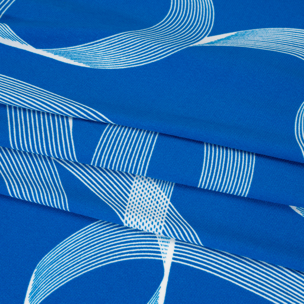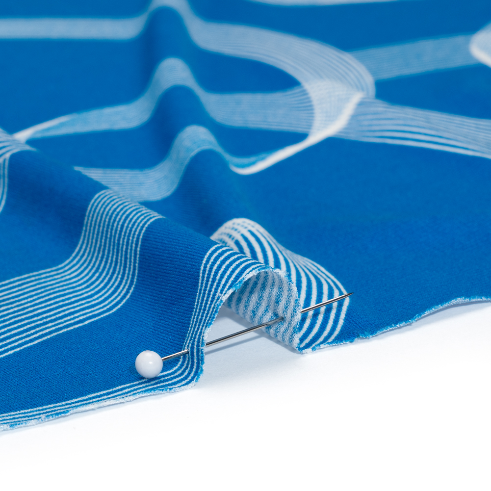 Stretch Polyester Tricot - Bright Blue and White Looping Lines - Designer Deadstock