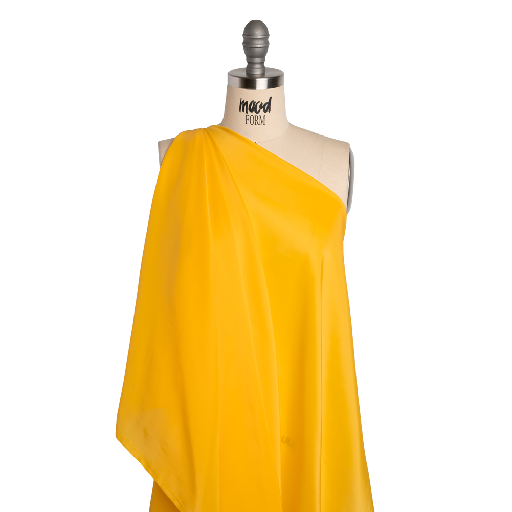 Brighten up every day with this Gamboge Stretch Polyester Twill Lining. Take a lightweight off your shoulders when you line your projects with its sleek, smooth hand and airy, flexible drape.Suggested Projects: Linings for Jackets, Blazers, Blouses, DressesContent: 100% PolyesterStretch: 10% WeftwiseOpacity: TranslucentThis gamboge yellow twill lining brings a slice of sunshine into your projects. A sleek, smooth hand is joined by an airy and flexible drape to create a twill lining beyond your wildest dreams. The durable twill weave ensures long-lasting strength, making it perfect for projects meant to endure for years. With a slight stretch through the weft and subtle sheen, it's the ideal choice for linings in a wide range of garments, from tailored jackets and blazers to airy blouses, flowing dresses, relaxed maxi-skirts, and more!