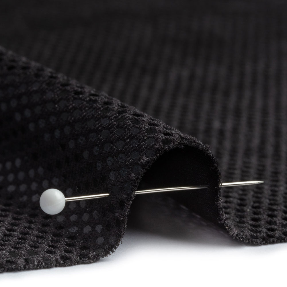 Dance to the beat of your own drum with this Black Crystal Foiled Polka Dots Stretch Polyester Velour. Small metallic ovals cover a black velour fabric like a disco ball, sporadically flashing like strobe lights as the light bounces off of them. With a 25% weftwise stretch, flexible drape, and sleek fabric backing, grooving to the music is not only easy but also required! Let your imagination take you to flair pants (maybe with a matching top!), bodycon dresses, mini skirts, handbags, and more! A lining is suggested for added structure.