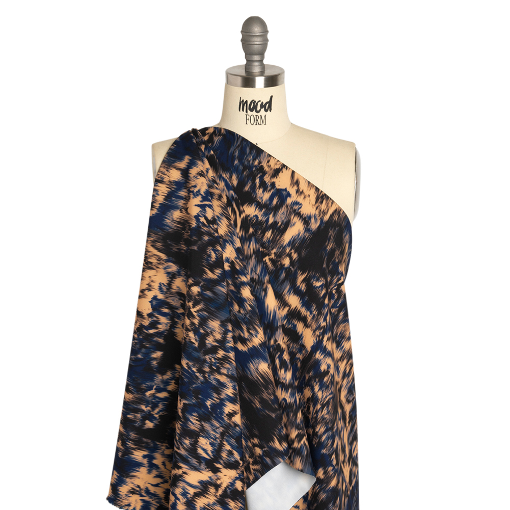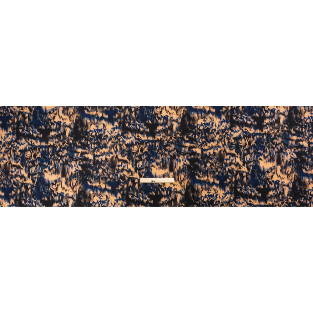 Admire the unpredictability of our Mood Exclusive Blue Shifting Sands Stretch Polyester Woven. Beige, navy, and blue colors bleed, shift, and drift into each other. With a 10% weftwise stretch, an expertly slick hand, and a supple drape, this medium-weight fabric is ideal for anything from casual clothes to workplace pieces! You’ll find that creating chinos, shift dresses, dirndl skirts, and blazers is as easy as they are comfortable. And, as it is completely opaque, a lining is only recommended if more structure is desired.