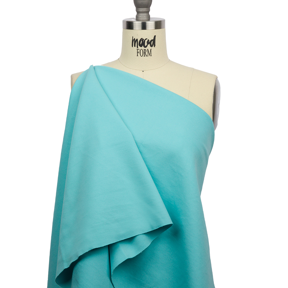 Blue is good for you! Get the perfect dose with this Sky Blue Stretch Ponte Knit. With a smooth hand, 50% all-way stretch, and flexible drape, it’s an all-around versatile textile.Suggested Projects: Dresses, Skirts, Tops, PantsContent: 62% Rayon, 32% Nylon, 6% SpandexStretch: 50% All-WayOpacity: OpaqueSleek and effortless in a bright pastel blue hue, let this knit take you from day to night with ease. With a nearly 50% all-way stretch, ponte is suitable for work or play. With a medium weight and flexible drape, wear it through almost any season. Add a little flare to bodycon silhouettes with fit-and-flare dresses and peplum tops, or craft stretch blazers and pencil pants for extra-comfy office wear. It is opaque, so a lining is entirely optional.