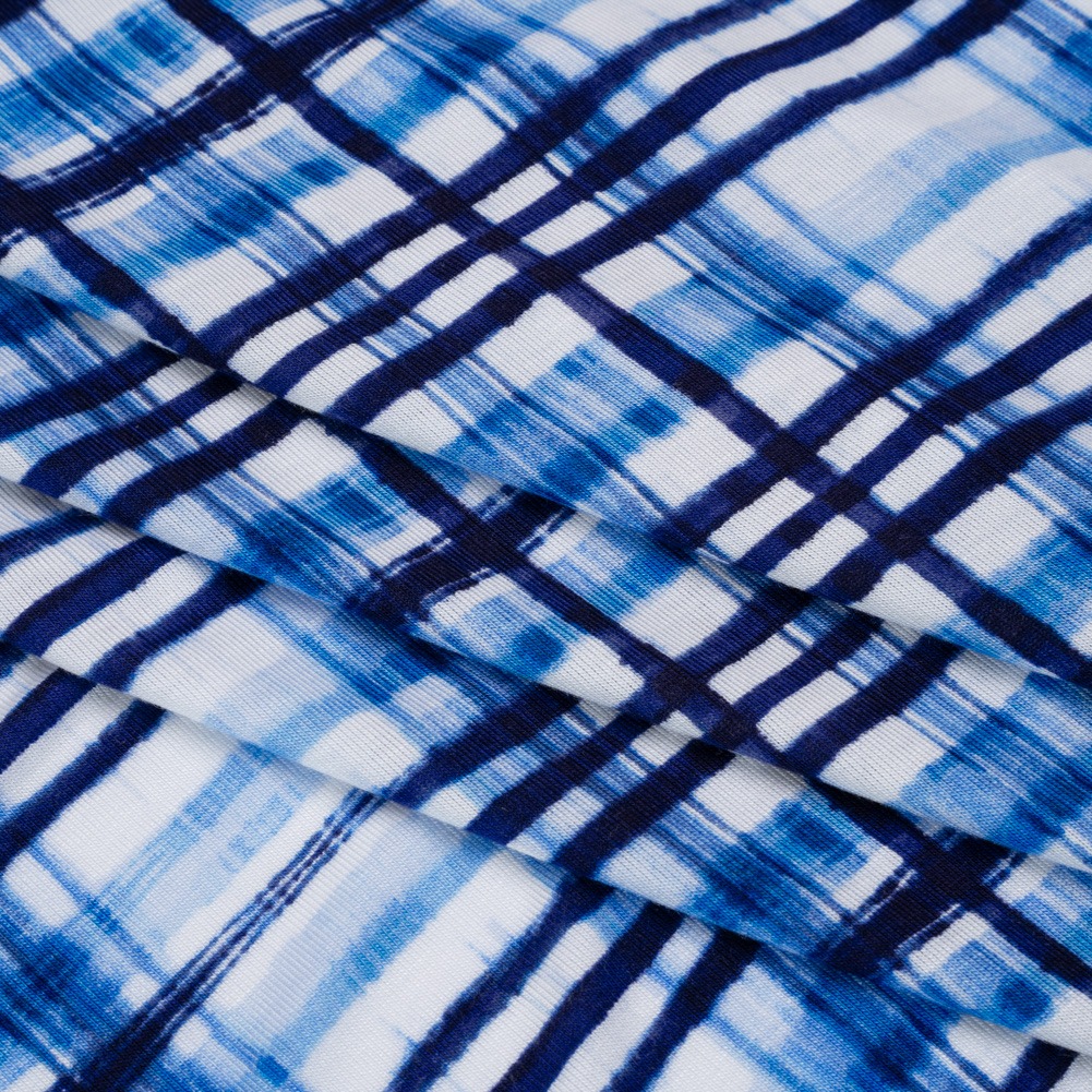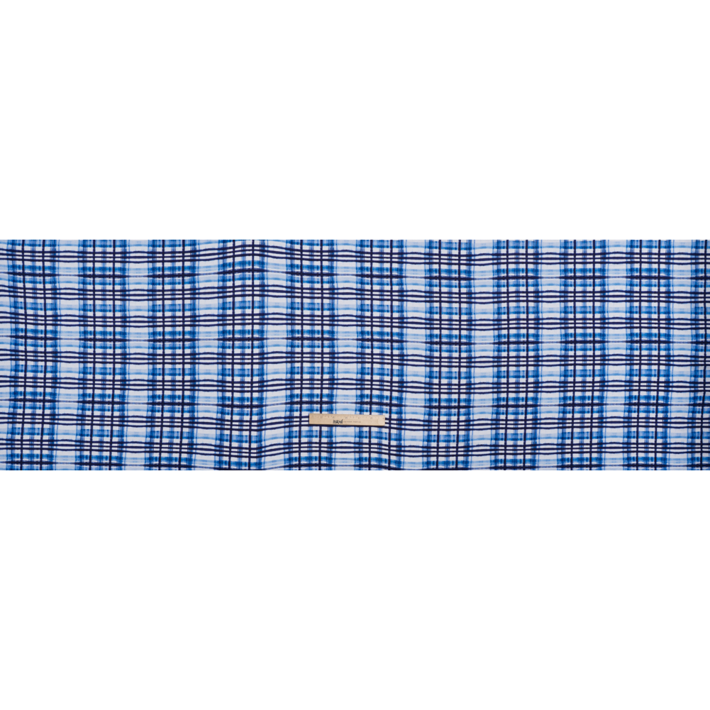 Stretch Rayon Jersey Print - Navy, Blue and White Painterly Plaid - Deadstock