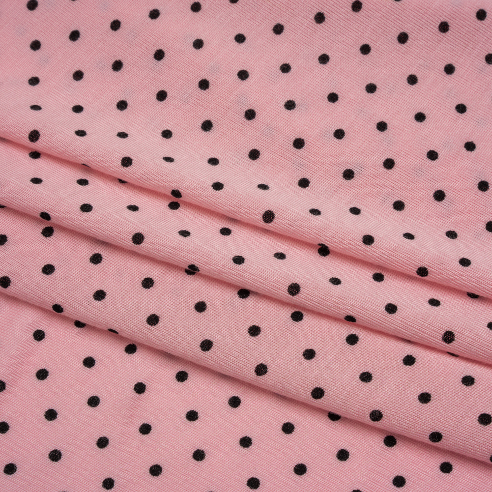 Stretch Rayon Jersey Print - Pink and Black Polka Dots - Deadstock