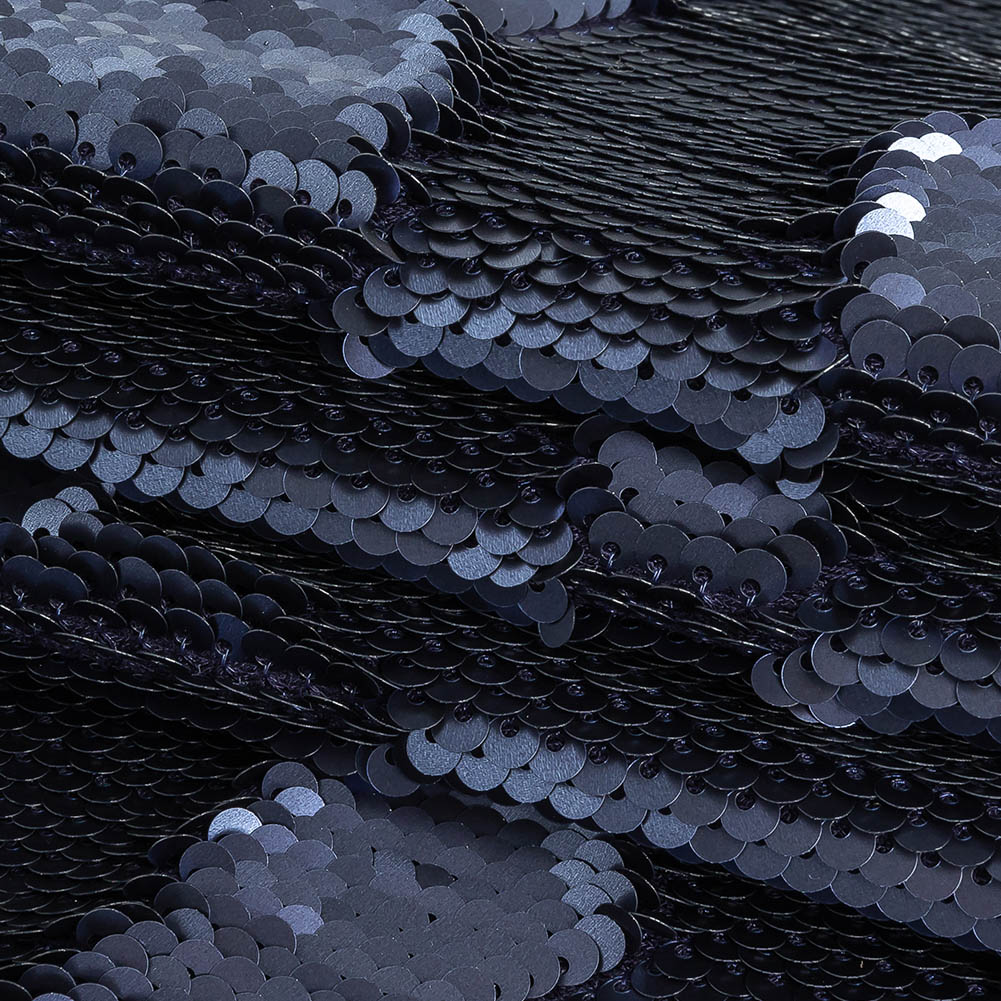 What’s better than one tone? Our Two-Tone Slipstream Paillette Sequins on Navy Rayon Stretch Jersey Backing.