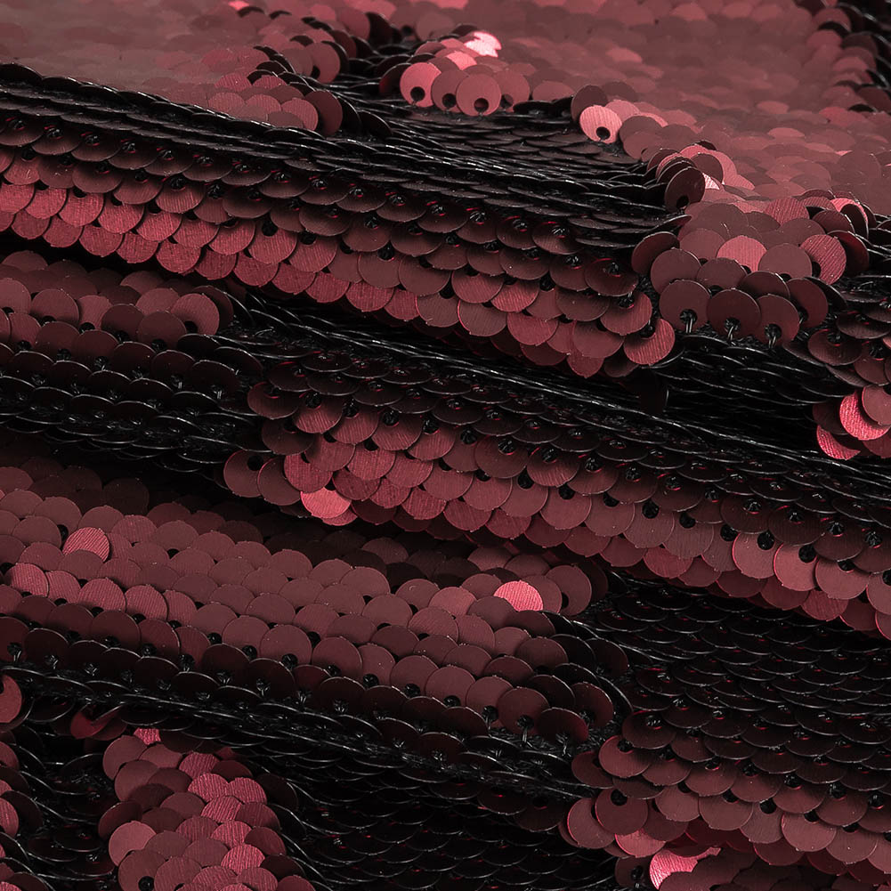 You don’t have to go further than your sewing room to catch a whiff of vineyards; our Two-Tone Vineyard Mist Paillette Sequins on Black Rayon Stretch Jersey Backing does the job.