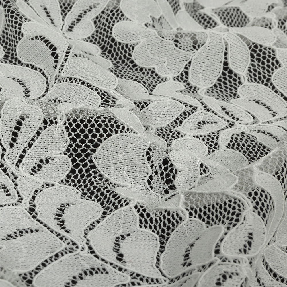 You'll be an absolute vision in this Bright White Floral Stretch Re-Embroidered Corded Lace! Brilliant white across the whole, this lace features an elegant floral pattern on a ground of fine net, outlined in delicate, shimmery cords. With a soft, yet textural hand, use the fluid drape and generous all-way stretch to create wedding gowns with fitted sleeves and flowing skirts, or dream up dance and skating costumes with an exceptionally elegant edge. Mostly transparent, a lining or underlayer is recommended for most projects, both for opacity and added structure.