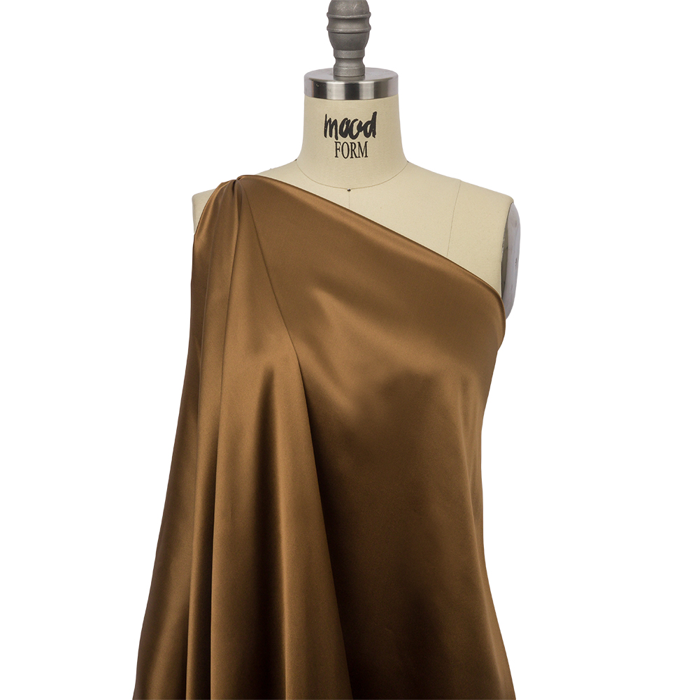 Presenting a quality Stretch Silk Charmeuse - Dark Olive - Premium Collection made especially for Mood. Medium weight with an exquisite drape, this lustrous material is made that much more versatile given its added crosswise stretch. The ideal fabric for classic gowns, dresses, blouses and lingerie, silk charmeuse can also be used for superior linings. Available in 95+ attractive shades. Note: Dye lots are subject to change up to 10% in either direction. Ordering swatches is HIGHLY recommended for these products.