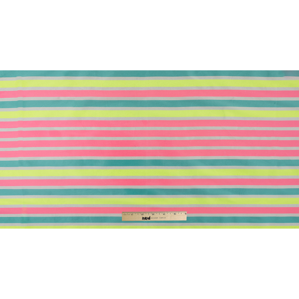 Bold, bright and buoyant, here we have a Fluorescent Striped Taffeta sure to make a statement.
