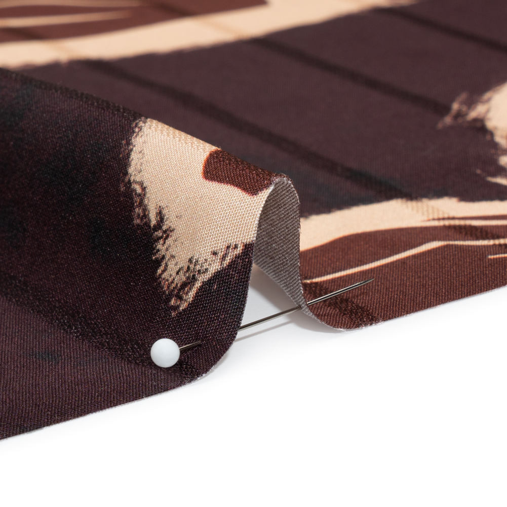The simplistic style of our Mood Exclusive Burgundy Simple Luxuries Striped Viscose Jacquard goes a long way, creating a floral design tailored to the quiet elegance of your life. The flowers fall through a mottled black and burgundy background, each bordered by a hasty smattering of pale peach paint. Vertical pinstripes line the floral face with a subtle luster, bringing a tactile dimension to the sleek yet grainy hand. Let the supple drape and mediumweight feel lead you to dress shirts, polished blazers, pencil skirts, and more! Given its translucent nature, we recommend a lining for a professional finish.