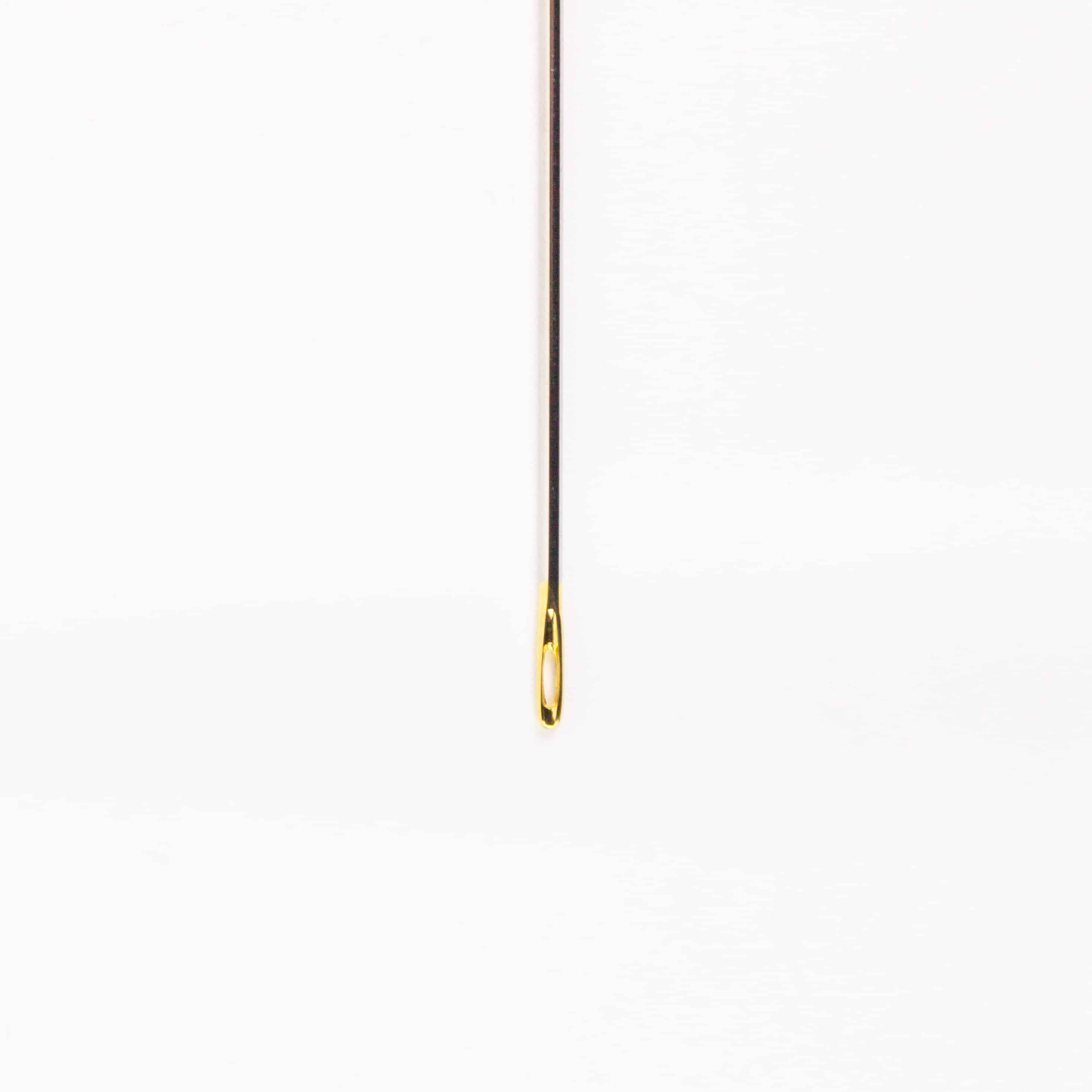 The #15 is the ultimate solution to handling and embellishing with thicker threads! With its uniquely designed extra-large, gold eye, threading and stitching with perle cotton #3 is a dream! These milliners offer effortless piercing through multiple layers of wool and other fibers. As with Sue Spargo’s entire needle collection, these needles are made in Japan.