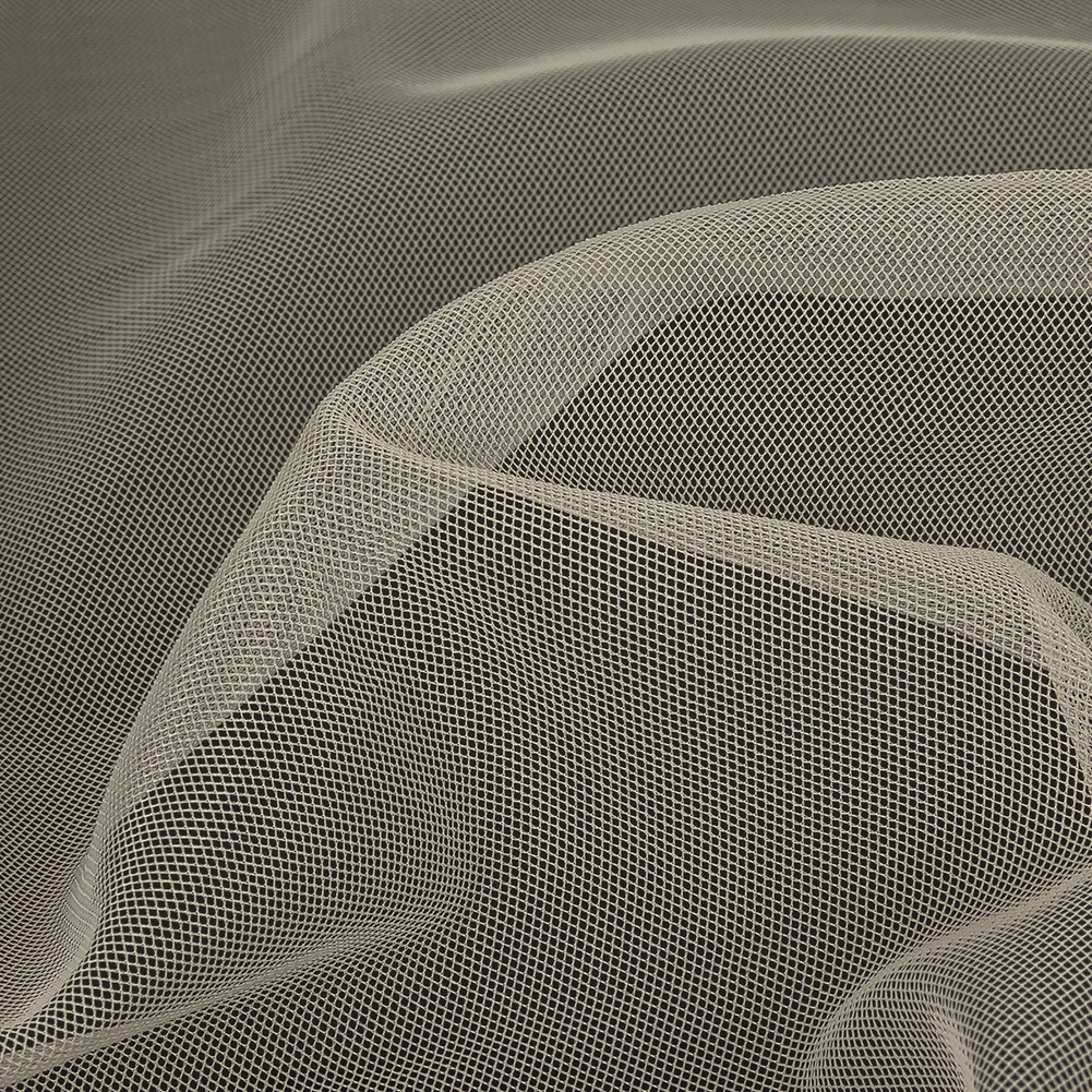 Our Summer Sand Polyester Stretch Mesh is so perfectly beachy, you can almost feel the grains of warm sand in between your toes! Offering just enough give through the warp and slightly more stretch in the weft, a material such as this one is ideal for constructing pieces that are snug but provide enough room for comfort. With its warm, dry hand, a touch of crispness, and a billowy drape, suffice it to say we're excited to see what you construct! Ideas for this magnificent mesh include dresses with illusion necklines, sleek bodysuits, and cheekily diaphanous tops for that Western-galactic music festival look or indulge even more imaginative endeavors such as creating costumes inspired by your favorite characters. Fully sheer, a lining might be needed depending on the amount of opacity you'd like to include in your looks.