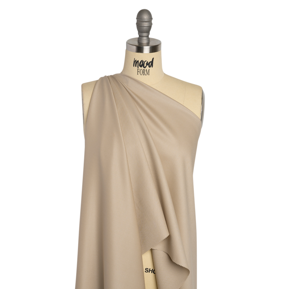 Dress deliciously with this Oatmeal Super 120 Merino Wool Suiting. Featuring a soft hand, breathable nature, and flexible drape, it’s perfect for innovative office wear.Suggested Projects: Jackets, Shirts, Pants, DressesContent: 100% Merino WoolStretch: NoneOpacity: OpaqueDress for success with this oatmeal brown merino wool suiting! Indicated by the ‘Super 120' signifier, sumptuous merino wool is twisted and woven in luxuriously fine threads, crafting a soft, breathable, and flexible fabric. In a greige shade produced exclusively for Mood, create suit jackets, pleated trousers, or sheath dresses. Opaque, a lining is suggested for tailoring purposes.