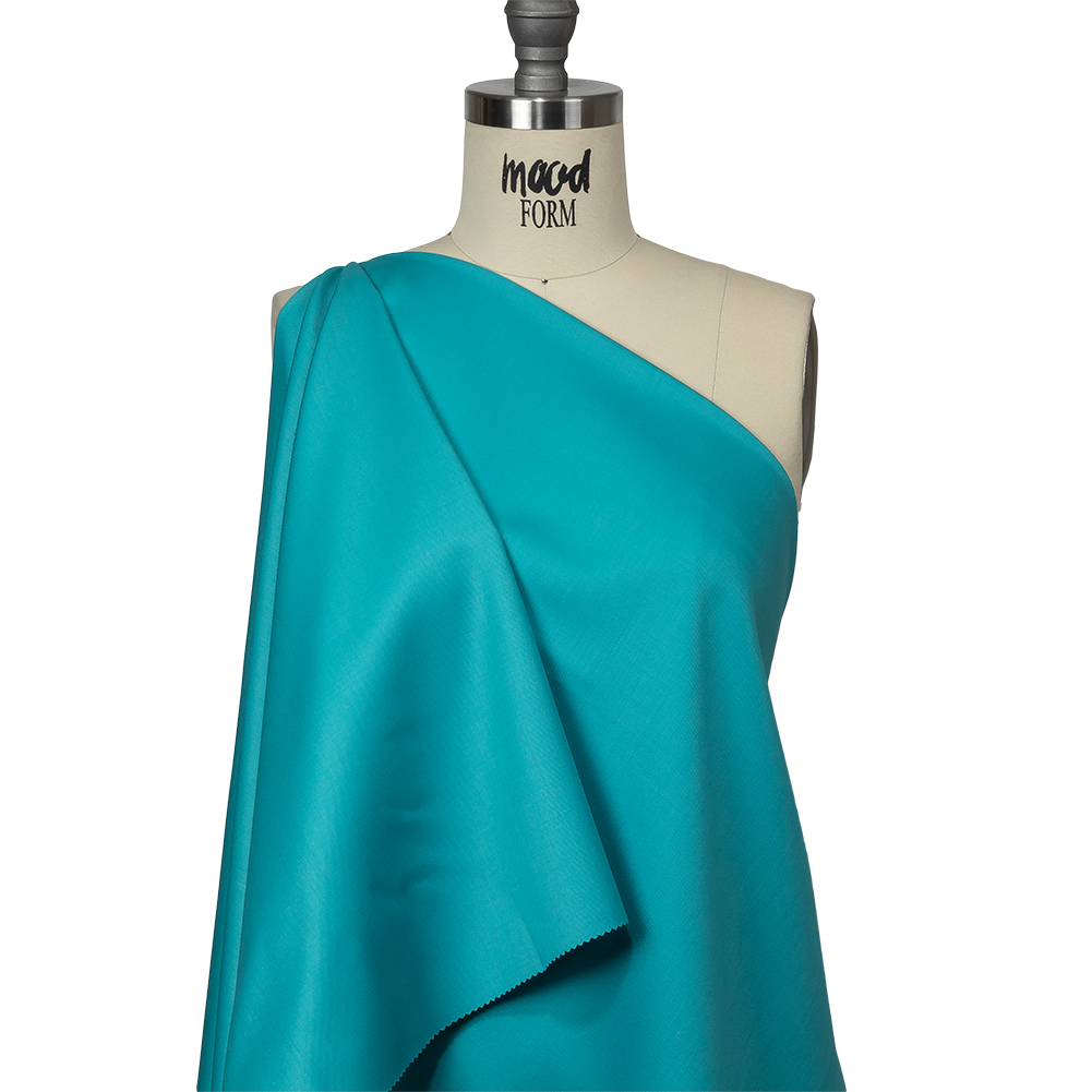 Glam up your professional wardrobe with this Peacock Blue Super 120 Merino Wool Suiting. Featuring a soft hand, breathable nature, and flexible drape, it’s perfect for innovative office wear.Suggested Projects: Jackets, Shirts, Pants, DressesContent: 100% Merino WoolStretch: NoneOpacity: OpaqueYou'll definitely want to show off when you wear our peacock blue merino wool suiting! Indicated by the ‘Super 120' signifier, sumptuous merino wool is twisted and woven in luxuriously fine threads, crafting a soft, breathable, and flexible fabric. In a vibrant peacock blue shade produced exclusively for Mood, create suit jackets, pleated trousers, or sheath dresses. Opaque, a lining is suggested for tailoring purposes.