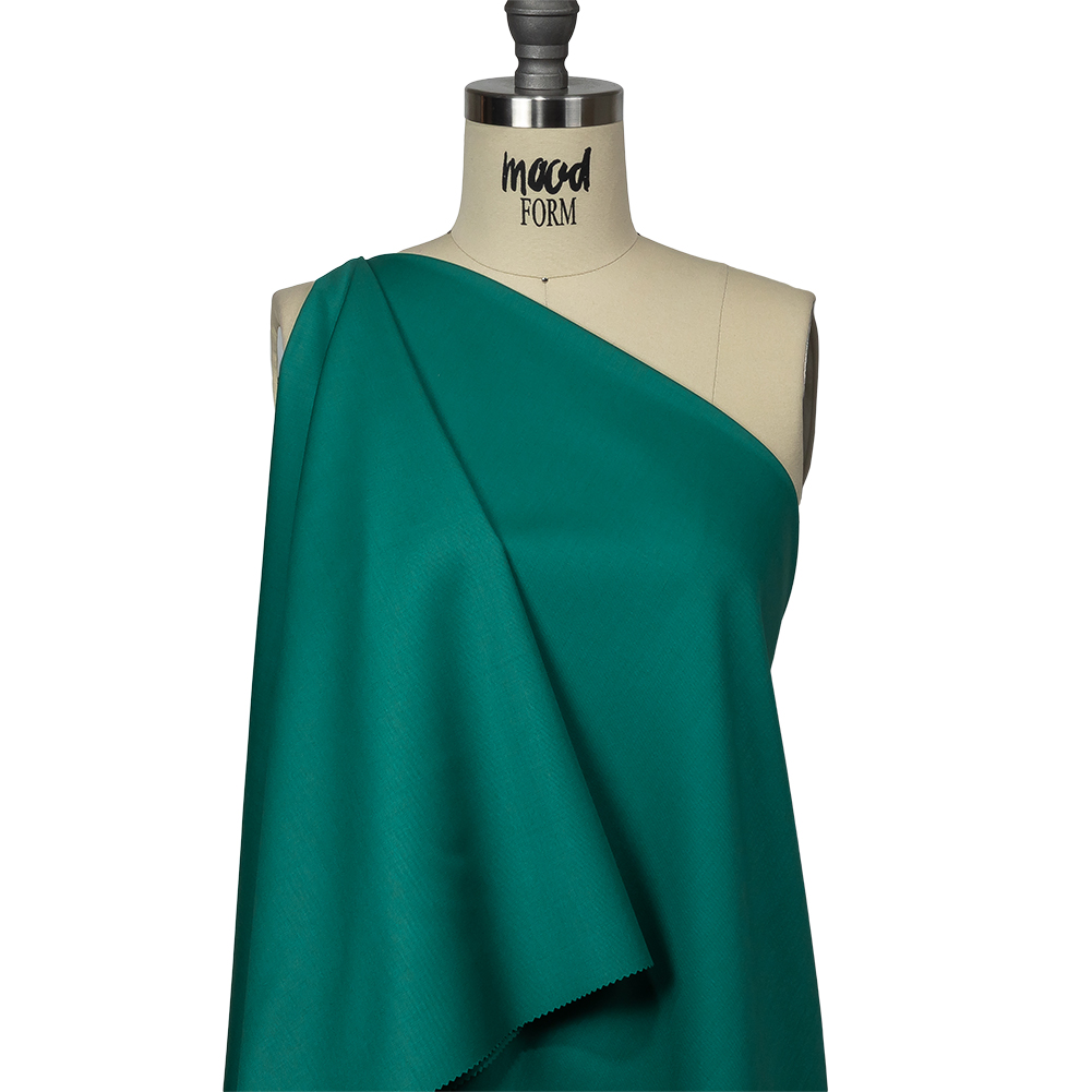 Like glittering Bahamian seas, our Teal Blue Super 120 Merino Wool Suiting will enchant you! Featuring a soft hand, breathable nature, and flexible drape, it’s perfect for innovative office wear.Suggested Projects: Jackets, Shirts, Pants, DressesContent: 100% Merino WoolStretch: NoneOpacity: OpaqueIntroduce bright jewel tones into your workwear with this teal blue merino wool suiting. Indicated by the ‘Super 120' signifier, sumptuous merino wool is twisted and woven in luxuriously fine threads, crafting a soft, breathable, and flexible fabric. In a vibrant teal green shade produced exclusively for Mood, create suit jackets, pleated trousers, or sheath dresses. Opaque, a lining is suggested for tailoring purposes.