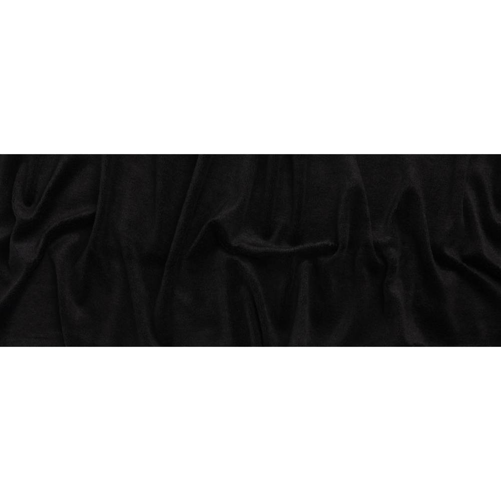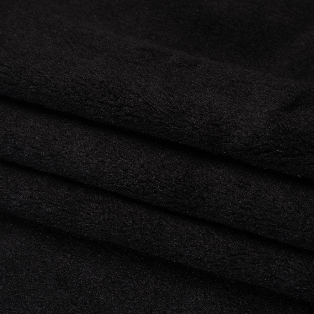 Spend long nights staring up at the stars in this Black Super Short Pile Wool Blend Faux Sherling—featuring an ultra-soft, plush hand and supple drape.Suggested Projects: Jackets, Coats, Vests, SweatpantsContent: 80% Acrylic, 20% WoolStretch: 50% WeftwiseOpacity: OpaqueThis black faux shearling wraps you in warmth and irresistible comfort, its ultra-soft plush hand and supple drape blending seamlessly with the super short-pile wool-blend construction. Perfect for autumn mornings or starlit winter nights, it transforms into oversized zip-up jackets, classic button-up coats, wide-leg sweats with matching pullovers, and more—each piece a cozy statement of style and the 50% stretch through the weft inspiring easy movement. Mostly opaque, it needs no lining, though one may be added for extra warmth and refinement.