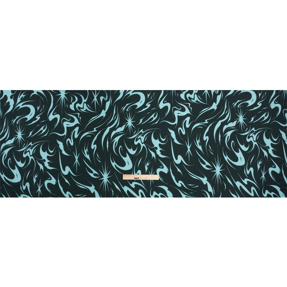 Sustainable and Recycled Viscose Satin Print - Sky Blue and Navy Swirls and Stars - Mood Exclusive Vincent's Hope