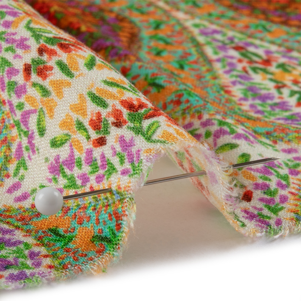 Take your time to admire the palace’s garden design on our Cream Laputa's Groundkeeper Sustainable Viscose Crepe. This fabric delivers an exceptional drape, creating smooth, graceful contours, while the textured surface enhances the fabric with added depth and appeal.Suggested Projects: Pants, Skirts, Unconventional Suitings, DressesContent: 100% EcoTang ViscoseStretch: NoneOpacity: TranslucentTurquoise tear-shaped pools with orange and red petals; ivy avenues with violets and pink fountains; manicured, square lawns of vines, poppies, and bluebells—this vivacious estate is busy yet orderly, vibrant yet serene. Staying cool and beautiful in the warmer months is easy with the billowing drape and lightweight nature of this crepe. Pebbly in hand and translucent, create elegant blouses, flowy summer dresses, airy pants, and more! For added opacity and modesty, a lining is suggested. Have everything you need for a tea party in Wonderland with our Gisele Collection! Enjoy a bright bunch of cotton voile, viscose crepe, viscose georgette, and viscose linen woven!