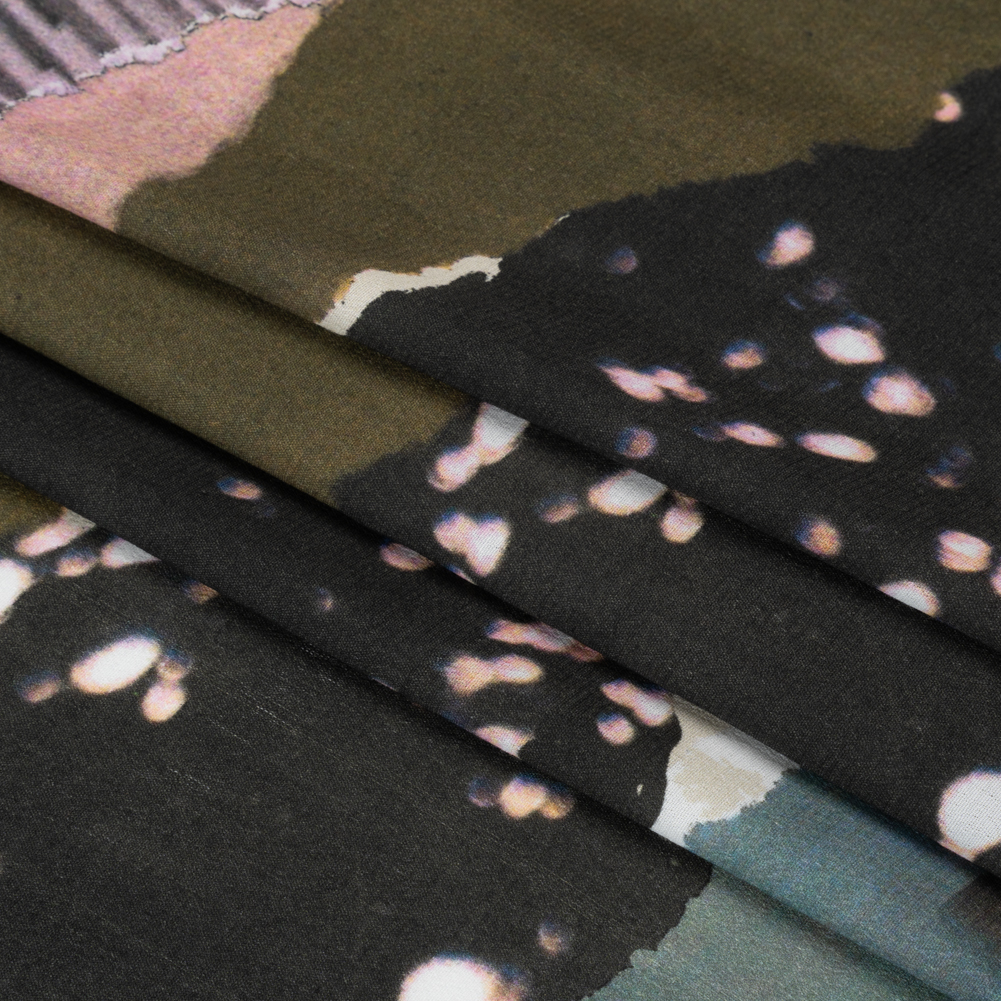 Sustainable Viscose Crepe Print - Dark Gray and Lavender Torn Photos Collage - Mood Exclusive What About Always