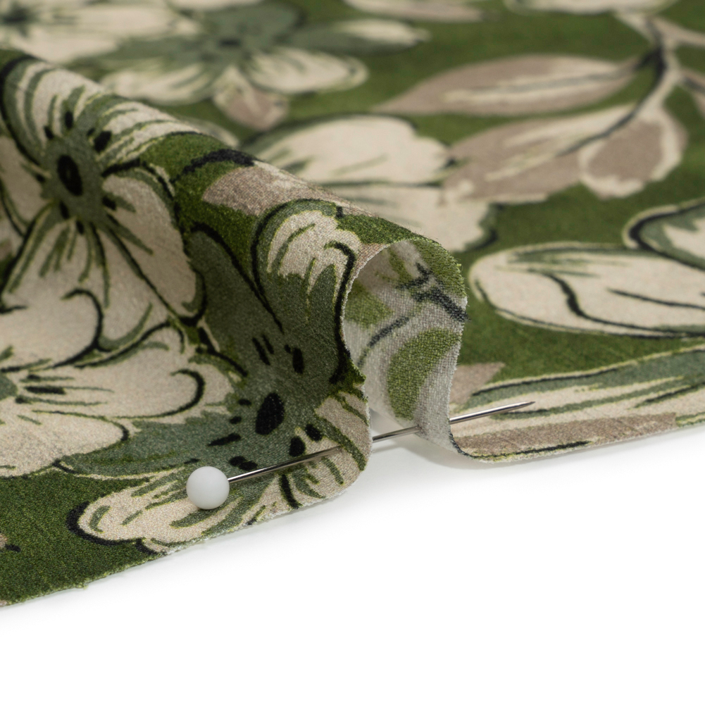 Sustainable Viscose Crepe Print - Green and White Floral - Mood Exclusive Crowded Fields