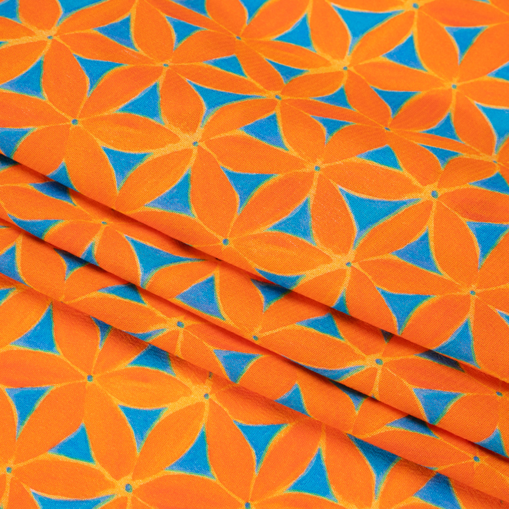 Sustainable Viscose Crepe Print – Orange and Teal Flower Lattice – Mood Exclusive Lovely Lillies