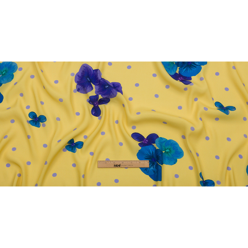 Sustainable Viscose Crepe Print - Yellow and Blue Floral and Polka Dots - Mood Exclusive Treasures Renewed