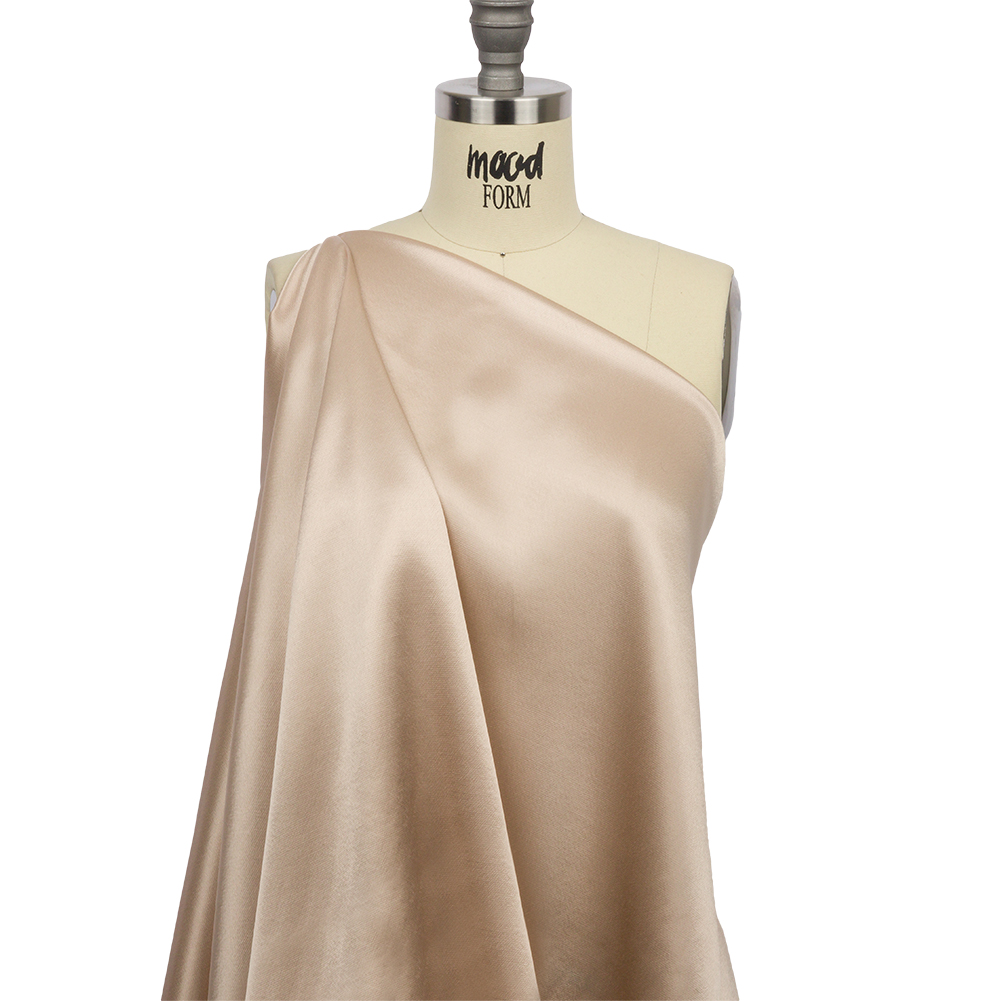 Find elegance in simplicity with this Mood Exclusive Elliana Tan Sustainable Viscose Fluid Satin. The durability and smooth glide of this satin make it a pleasure to sew with, and every project is a breeze with its soft, slick texture and flexible drape. Without stretch, create fabulous sewing projects for any occasion, including blouses with bell sleeves, dresses, and maxi skirts with ruffle accents. As this material is opaque, a lining can be used for structure if desired.MoodEarth Verified: This fabric contains EcoVero Viscose, a sustainable viscose with responsible wood sourcing, up to 50% lower water impact, and up to 50% lower CO2 emissions. For more information on Mood's sustainability initiatives, check out MoodEarth here.