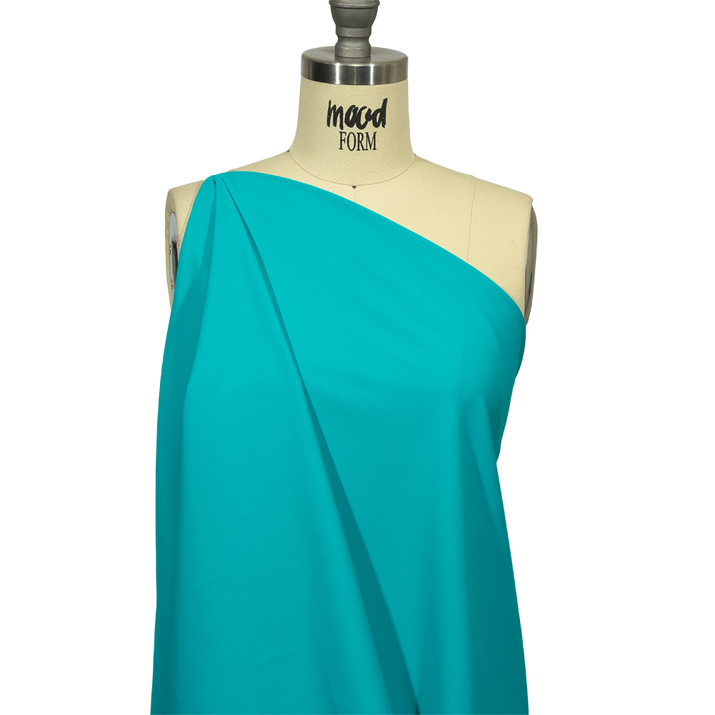 Whether you're planning an island escape or a fabulous pool party, this Santorini Light Aqua Green UV Protective Swimwear Tricot is sure to fit all your swimwear needs! Seen here in an aqua blue with a greenish tint, this tricot is definitely more than meets the eye. In addition to the just under 50% all-way stretch, bouncy drape, and smooth, cool feel, it contains several properties that make it the ideal fabric for swimwear, including one-pieces, bikinis, and both statement and performance swimsuits. Discover these fabulous properties for yourself:Chlorine Resistance: Keep your swimsuit looking and feeling fresh for years to come, thanks to the chlorine resistance which helps to maintain colorfastness, elasticity, and fabric integrity.UV Protection: Protect yourself against harmful UV rays with a UPF of 50+.The Santorini Collection comes in two different grounds—Plus and Light—with more than 40 colorways each! This product is from the Santorini Light Collection, which is slightly lighter in weight.MoodEarth Verified: This eco-friendly material is OEKO-TEX certified; tested independently and worldwide, the certification system evaluates finished, semi-finished, and raw textiles while thoroughly covering chemicals, harmful substances, and precautionary parameters. For more information on Mood's sustainability initiatives, check out MoodEarth here. WARNING: Cancer and Reproductive Harm - www.P65Warnings.ca.gov.