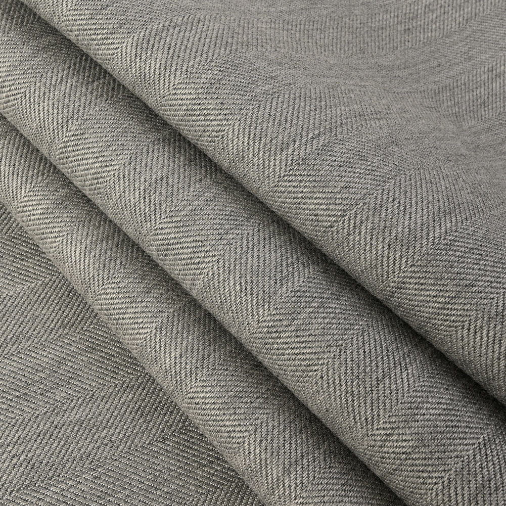 Your living room will steel the show with this Sunbrella Switch Silver Organic Herringbone Twill.